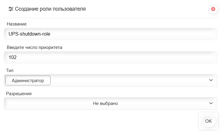 Название роли UPS-shutdown-role приведено в качестве примера. Допускается иное именование роли.